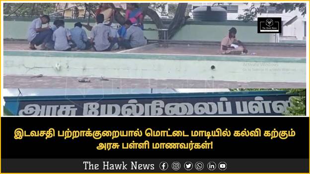இடவசதி பற்றாக்குறையால்  மொட்டை மாடியில்  கல்வி கற்கும் அரசு பள்ளி மாணவர்கள்!