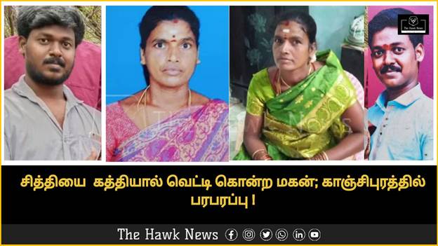 சித்தியை  கத்தியால் வெட்டி கொன்ற  மகன்; காஞ்சிபுரத்தில் பரபரப்பு !